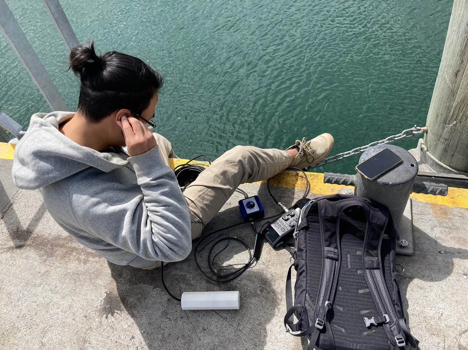 這樣的聆聽經驗,來自於視覺的缺席。水下世界長期處於模糊且受限的視覺條件之中,光線的衰減與水體的混濁,使我們難以建立穩定的空間認知;然而,聲音在水中卻具有較高的傳遞效率與保真度,使「聽」成為理解水下環境的可能。